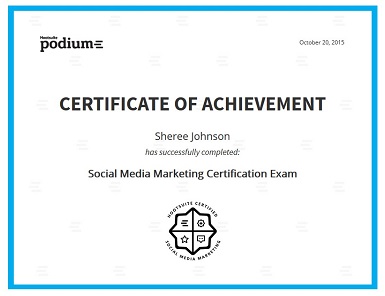 SJ Insights’ CEO Sheree Johnson was one of the first 200 individuals around the world to be certified in Social Media Marketing by Hootsuite’s new Podium Social Media Marketing education/certification program. The Social Media Marketing Certification indicates competency and proficiency in social media marketing for business, including social media strategy, community building, content marketing and social media advertising. Individuals earn certification after passing a 60-minute rigorous examination and are listed in the Certified Social Media Marketing Professionals online directory. #KnowYourSocial